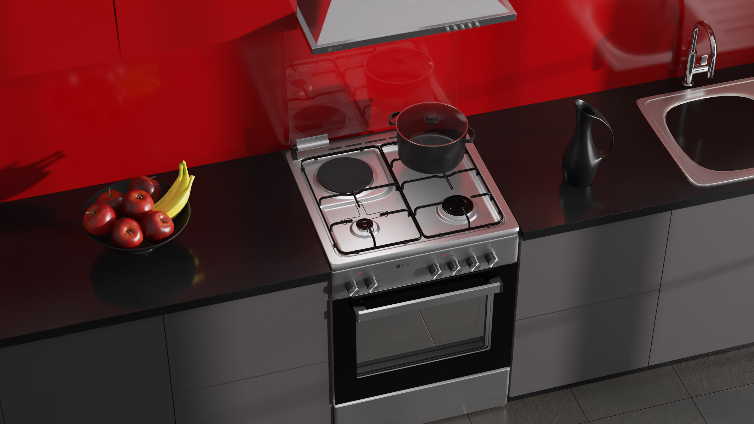 Κουζίνα μικτή, ηλεκτρικός φούρνος, 3 εστίες αερίου + 1 εστία ηλεκτρική