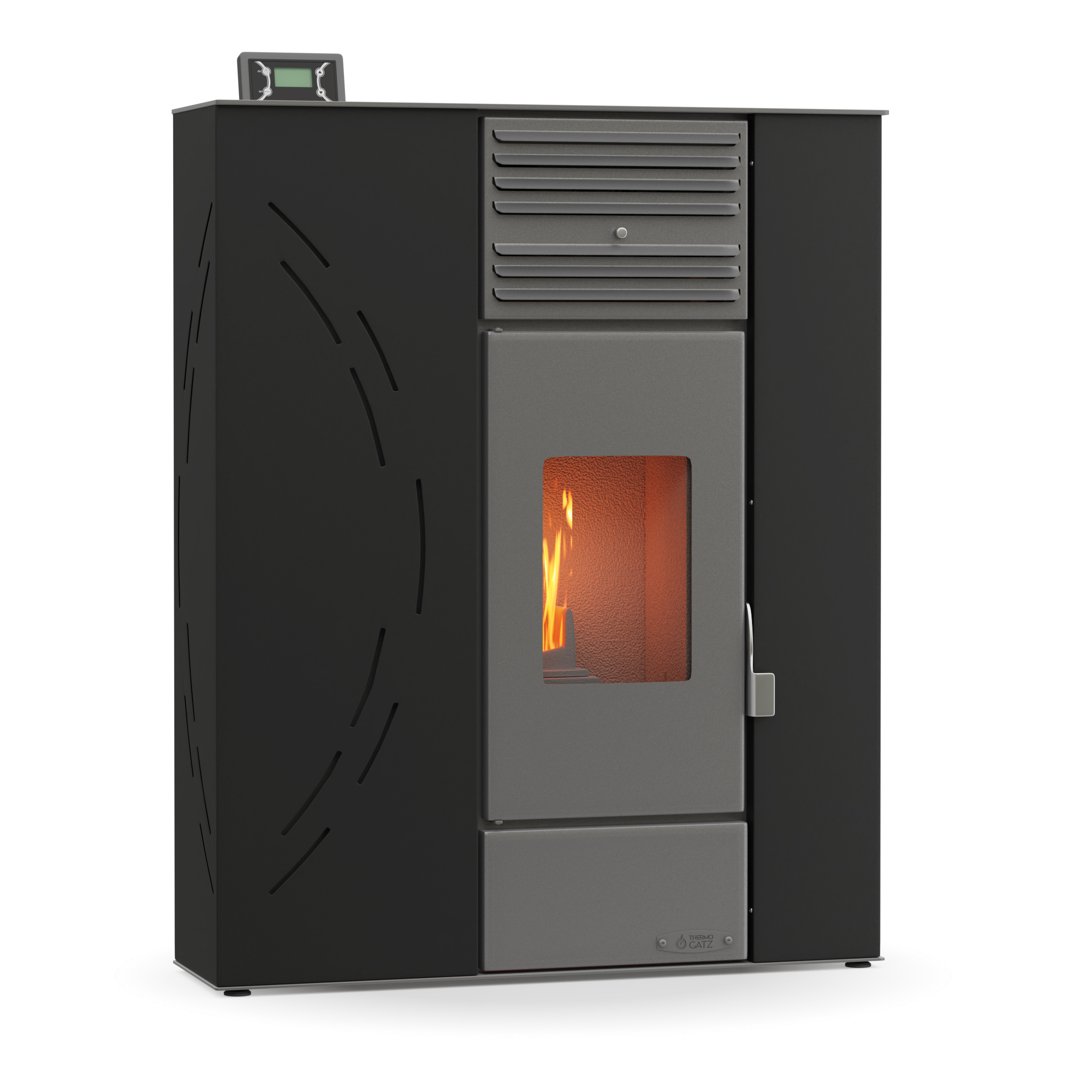 Διαθέτει δύο βεντιλατέρ θερμού αέρα διοχετεύοντας τη θερμότητα και στο πιο απομακρυσμένο δωμάτιο του σπιτιού. Ένα εμπρός (στην περσίδα), και ένα στο πίσω μέρος με δύο κανάλια εξόδου θερμού αέρα φ80. Ο εργονομικός της σχεδιασμός προσφέρει τη δυνατότητα τοποθέτησης της θερμάστρας σε στενούς διαδρόμους. Πυρίμαχο κεραμικό κρύσταλλο 4mm αντοχής έως 750°C. Ευανάγνωστη οθόνη χρήσης σε 10 γλώσσες. Χρονοδιακόπτης εκκίνησης και απενεργοποίησης. Αισθητήρας θερμοκρασίας χώρου. Σύστημα έξυπνης διάγνωσης βλάβης. Σκελετός από χάλυβα 3mm και χώρος καύσης με επένδυση βερμικουλίτη 25mm.
